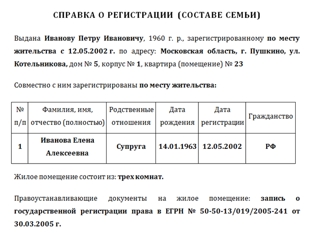 Рисунок 1. Образец справки о составе семьи и регистрации