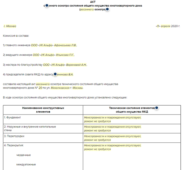 Как оформить акт осмотра общего имущества в МКД