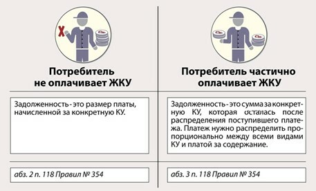 Если потребитель частично оплатил ЖКУ, то внесенную сумму распределите пропорционально между всеми видами коммунальных услуг и платой за содержание жилого помещения, указанных в платежном документе (абз. 3 п. 118 Правил № 354).