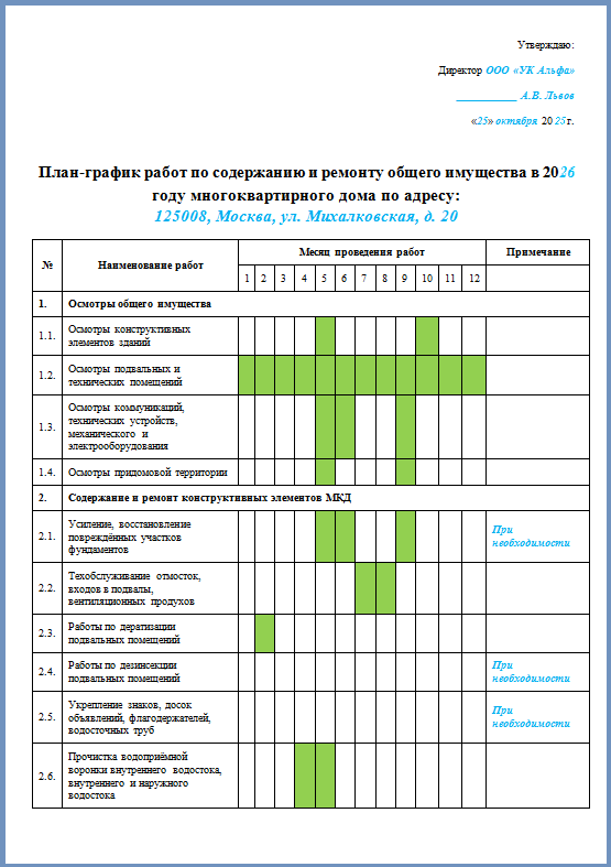 Рисунок 1. Образец плана-графика работ по содержанию общего имущества МКД