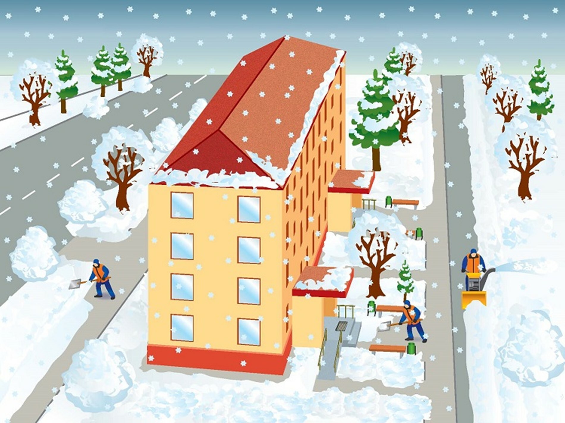 Чтобы обеспечить надлежащее состояние и безопасность придомовой территории зимой, УО, ТСЖ, ЖСК обязаны: