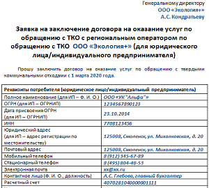 Рисунок 4. Формы документов для заключения договора с регоператором ТКО