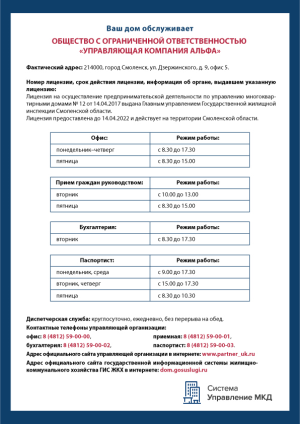 - телефоны УО, ТСЖ, ЖСК, аварийно-диспетчерской службы и аварийных служб РСО;