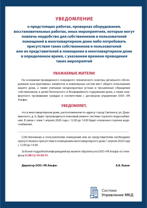 - уведомления о предстоящих работах с указанием времени проведения;