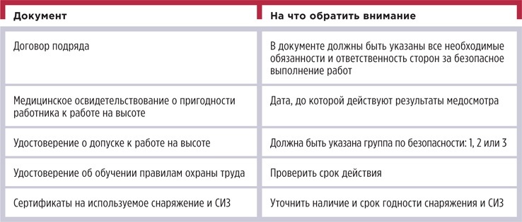 ТАБЛИЦА 2 Документы, которые нужно оформить до начала работ по очистке кровли от снега