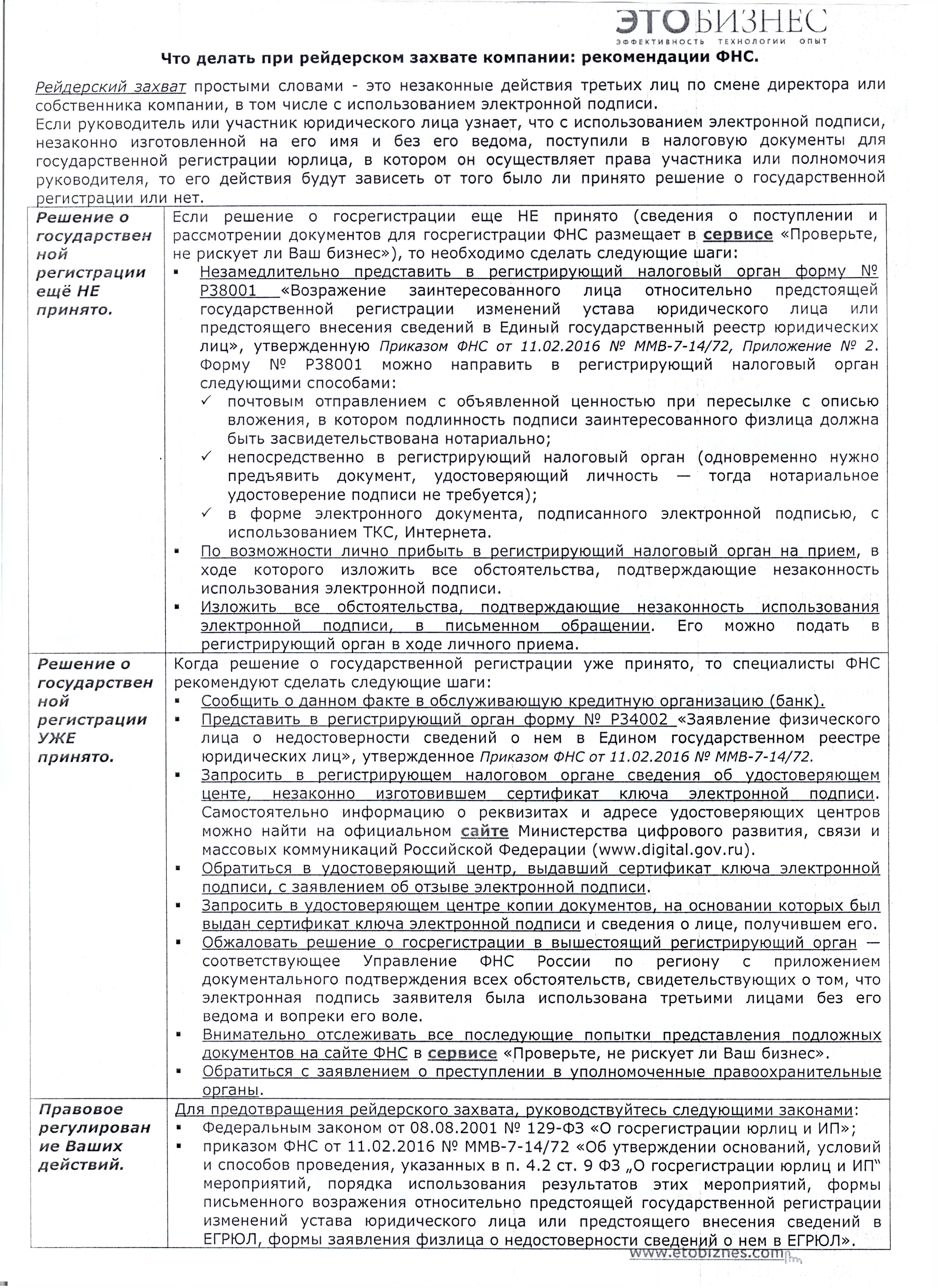 Рекомендации ФНС: что делать при рейдерском захвате компании