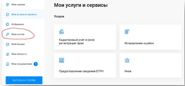 Для этого нажимаем в личном кабинете «Мои ключи»: