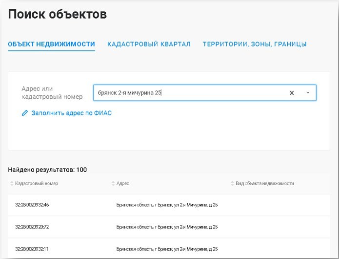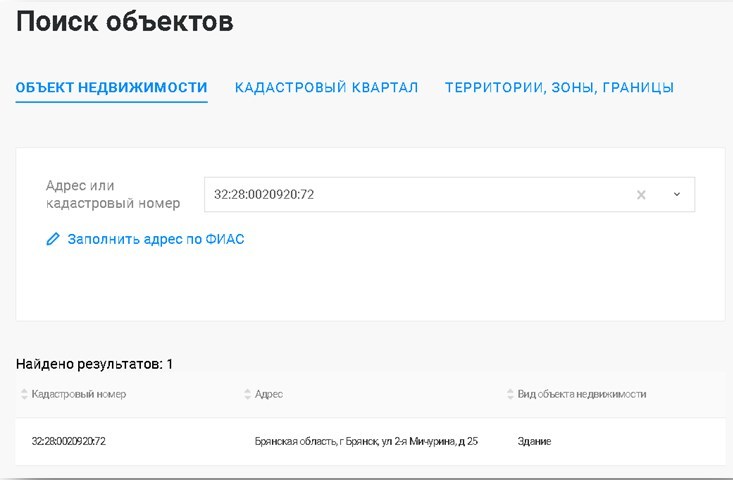 Появится окно, где можно по адресу или кадастровому номеру найти объекты недвижимости.