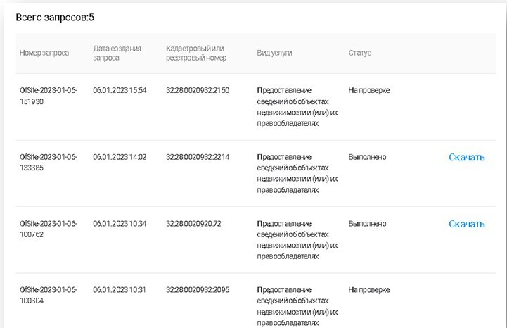 Теперь можно копировать эти номера в разделе «Поиск объектов» и заказывать выписки по всем помещениям.
