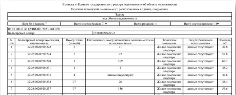 Теперь из выписок можно составлять реестр собственников – копировать данные квартир, сведения о собственнике, другую информацию из выписки в таблицу Excel.