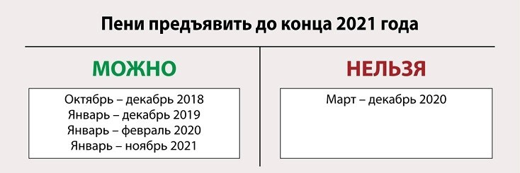 В 2021 году можно предъявить пени начиная с 2018 года, но придется исключить несколько месяцев 2020 года, когда Правительство вводило мораторий.