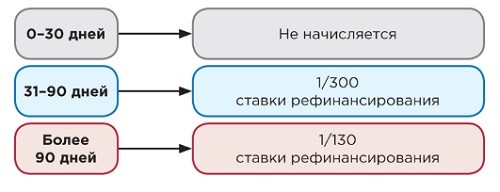 Отсчет дней, которые нужны для расчета пеней, начинают с 31-го дня просрочки.