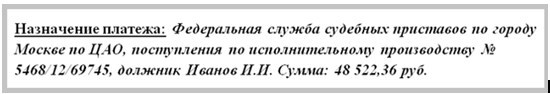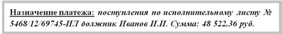 Отследить поступления от пристава можно также по выписке с расчетного счета. По поступлениям от судебных приставов, в выписке будет присутствовать следующая запись: