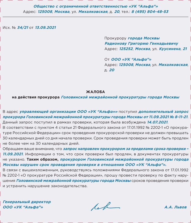 РИСУНОК 1. Пример жалобы, если нарушен срок проверки