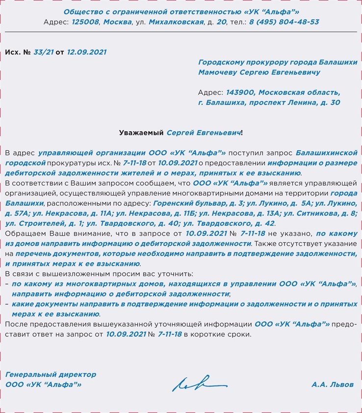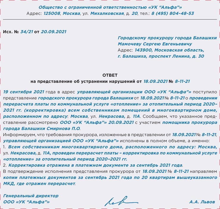 РИСУНОК 3. Как составить ответ на представление прокурора