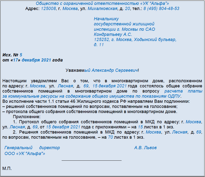 Саморегулируемая организация РИСУНОК 1 Сопроводительное письмо для направления документов общего собрания собственников в органы ГЖН, скачать письмо