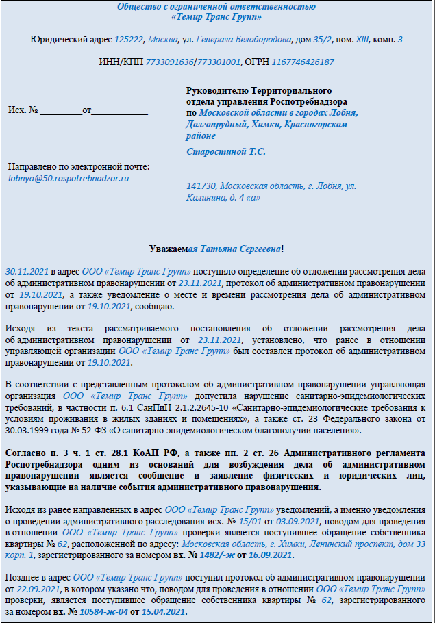 РИСУНОК 2 Ответ на запрос от Роспотребнадзора, скачать ответ