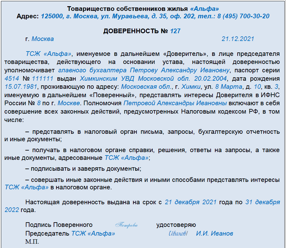 РИСУНОК 4 Доверенность на представление интересов ТСЖ в налоговых органах, скачать доверенность