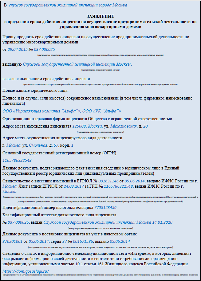 РИСУНОК 5 Заявление о продлении лицензии на осуществление предпринимательской деятельности по управлению МКД, скачать заявление