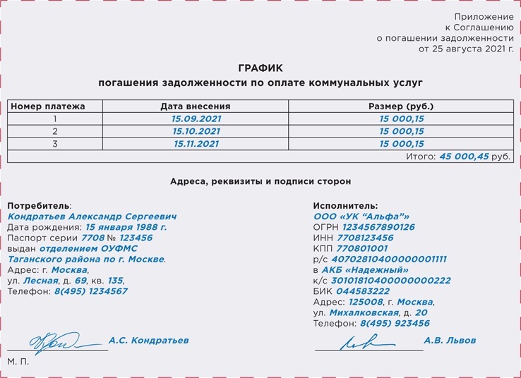 График погашения задолженности