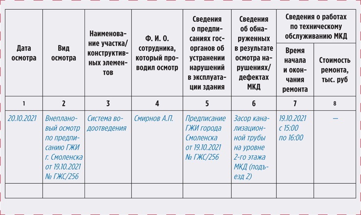 РИСУНОК 1 Образец журнала по эксплуатации МКД