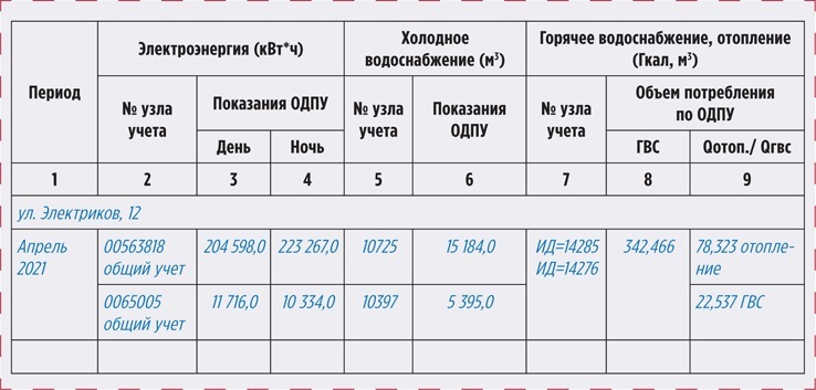 РИСУНОК 4 Образец журнала учета показаний ОДПУ по всем КУ