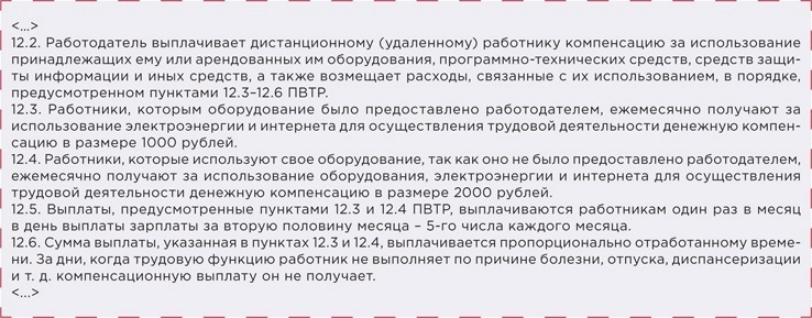 Фрагмент ПВТР с условием о компенсации работнику за то, что он использует свое оборудование
