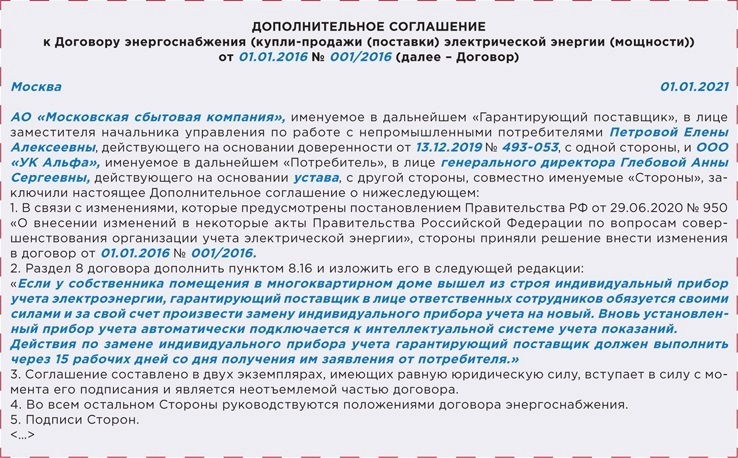 Как оформить доп.соглашение к договору ресурсоснабжения.