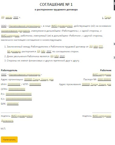 После изучения урока, вы грамотно проведете переговоры и подпишите соглашение о расторжении трудового договора на выгодных и безопасных условиях для компании.