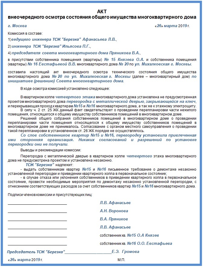 Рисунок 2. Пример акта внеочередного осмотра состояния общего имущества МКД