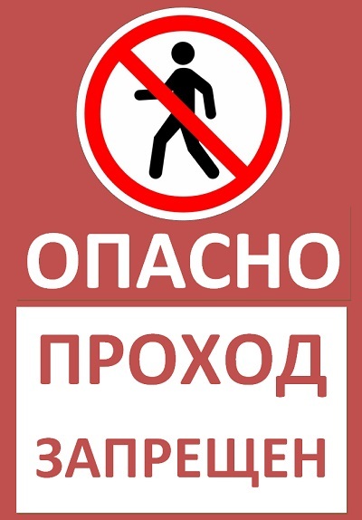 Непосредственно перед началом работ обеспечьте безопасность пешеходов на участках территории, где проводите работы по содержанию и ремонту кровли. Для этого оградите места возможного падения мусора и предметов одним из типов ограждений. Кроме того, разместите в местах подхода к опасным местам объявления о проводимых работах и временном запрете прохода. Пример объявления смотрите на рисунке