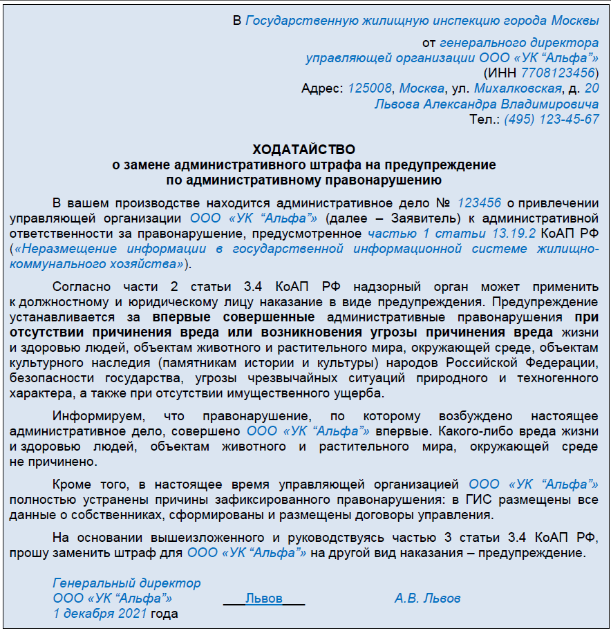 РИСУНОК 5 Ходатайство о замене административного штрафа на предупреждение, скачать ходатайство