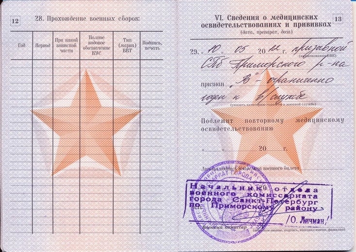 Рисунок 2. Раздел VI военного билета