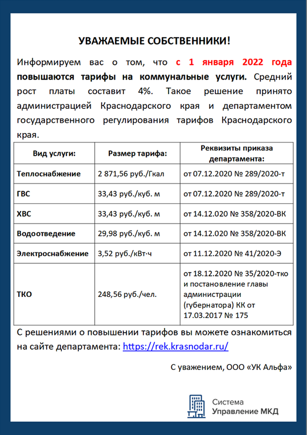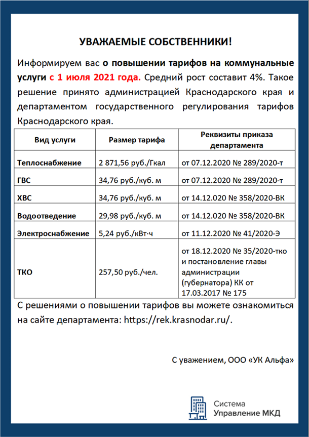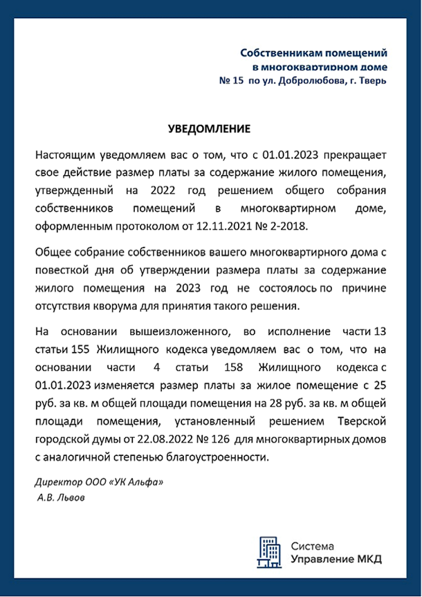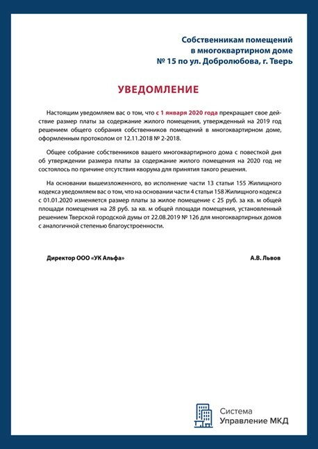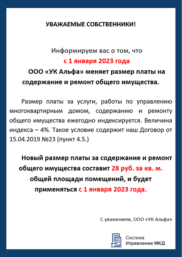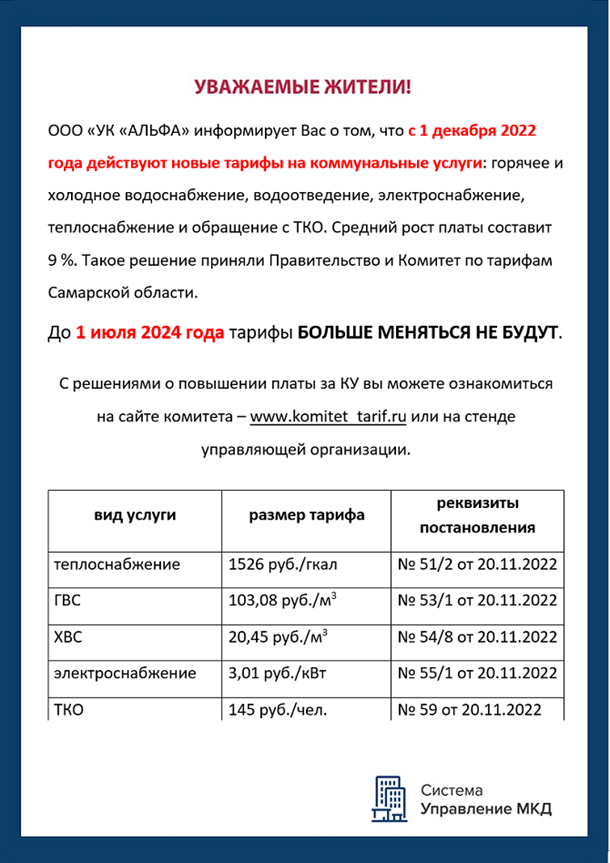 Эксперты системы УМД подготовили уведомления, чтобы сообщить жителям о повышении тарифов на коммунальные услуги и за платы за содержание общего имущества в МКД. Скачайте образец, который нужен для вашей ситуации.