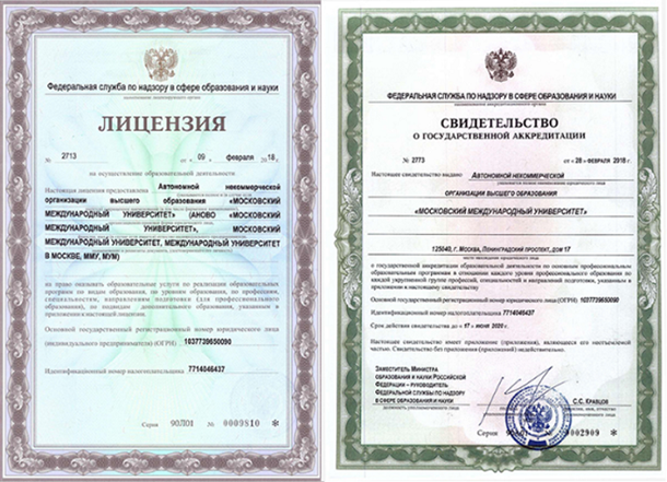 Рисунок 2. Образцы лицензии и аккредитации учебного центра