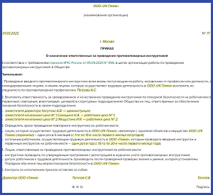 Приказ о назначении ответственного за проведение инструктажей по пожарной безопасности |