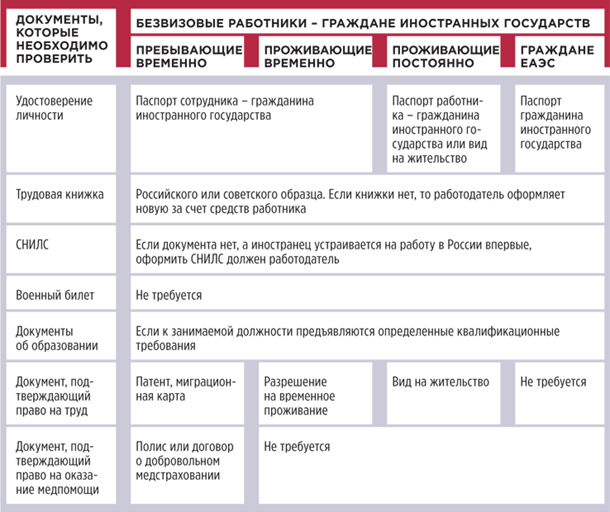 При трудоустройстве иностранные граждане ЕАЭС представляют тот же пакет документов, что и граждане Российской Федерации. Дополнительно они предъявляют полис ДМС. Если работодатель сам заключит с медицинской организацией договор о предоставлении платных медицинских услуг иностранному работнику, то в полисе нет необходимости.