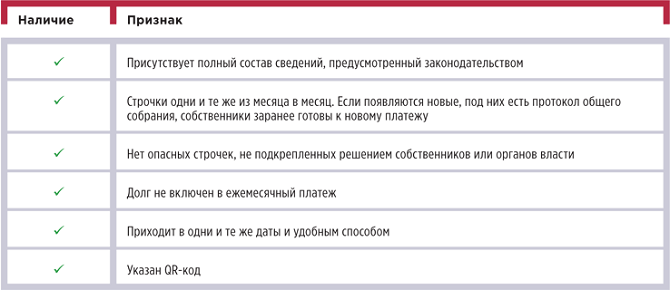 Например, мне приходилось видеть «обслуживание лифтового оборудования» отдельной строкой – это нарушение. В таблице 2 мы вместе с редакцией назвали виды опасных для платежного документа за ЖКУ сведений – говорят инспектору о возможном задвоении платежей.