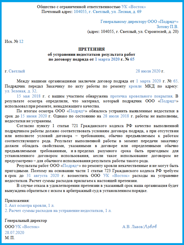 Какие аргументы использовать. Если вы установили, что подрядчик выполняет работы с недостатками, не принимайте их и не оплачивайте. Зафиксируйте результат выполненных работ или услуг и отразите в акте осмотра.