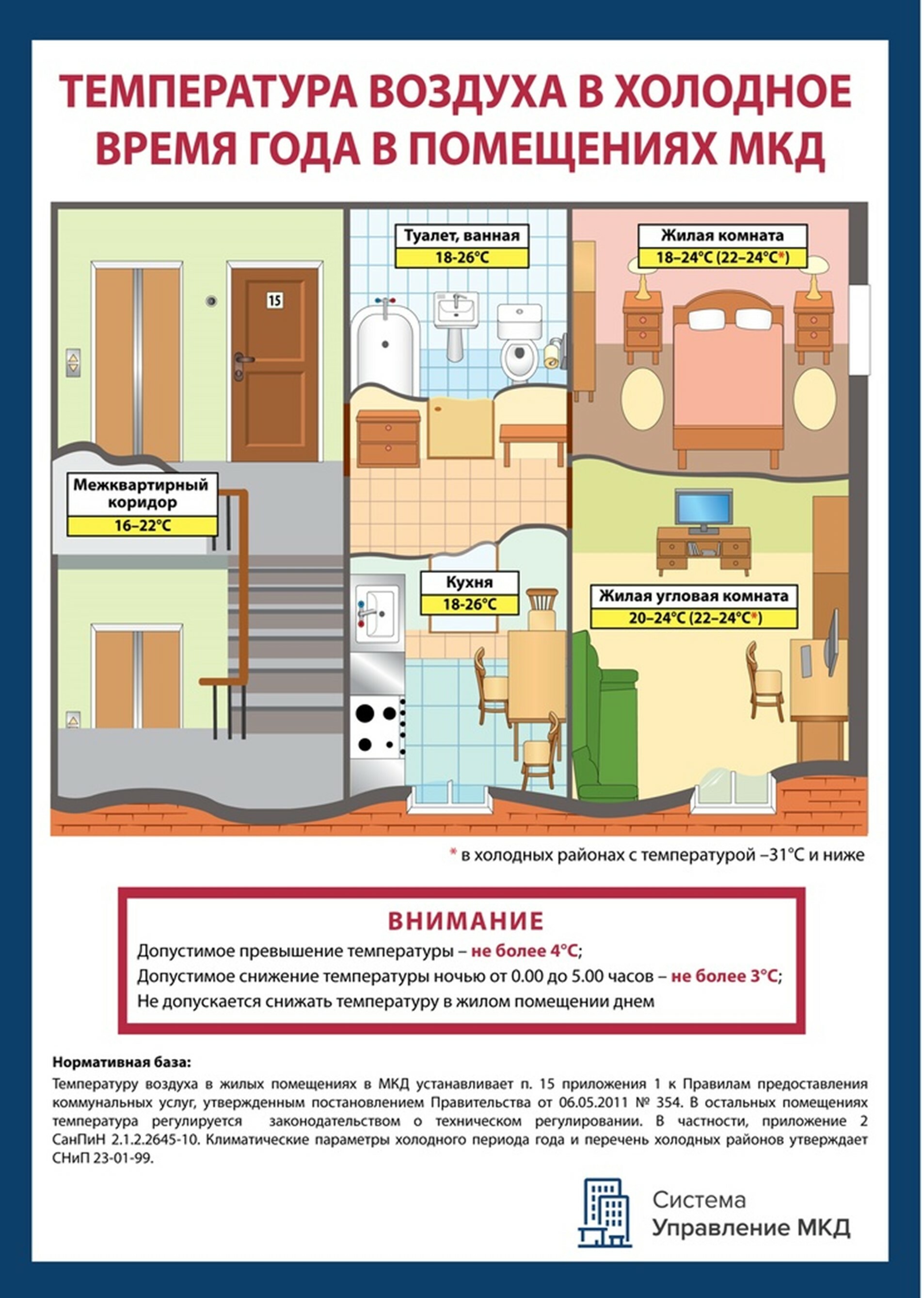 Памятка. Нормативная температура воздуха в холодное время года в помещениях МКД