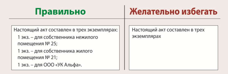 Количество экземпляров акта устанавливают на месте. На практике их определяют по количеству заинтересованных сторон. Как правило, это минимум два экземпляра.