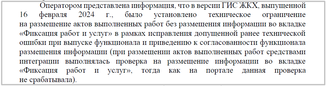 Ответ Минстроя РФ: Он признал новые требования к размещению АВР технической ошибкой, но обязал УО добавлять информацию во вкладку «Фиксация работ и услуг», чтобы соблюсти последовательность в процессе размещения данных.