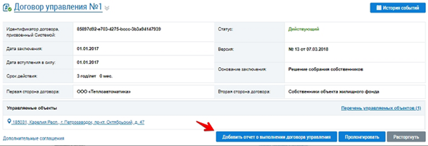 Пример размещения отчета о выполнении договора управления МКД