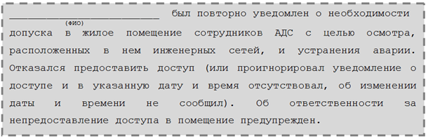 Рисунок 1. Пример формулировки в акте о недопуске при повторной попытке попасть в помещение собственника