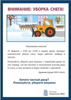 Объявление об уборке снега