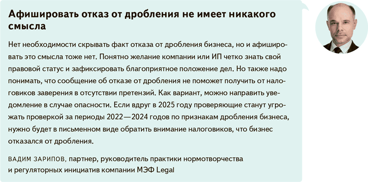 2Оповещать налоговиков об отказе от дробления не обязательно, но и не запрещено