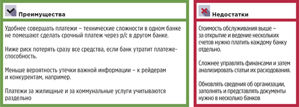 Рисунок 2. Преимущества и недостатки нескольких расчетных счетов у одного юрлица