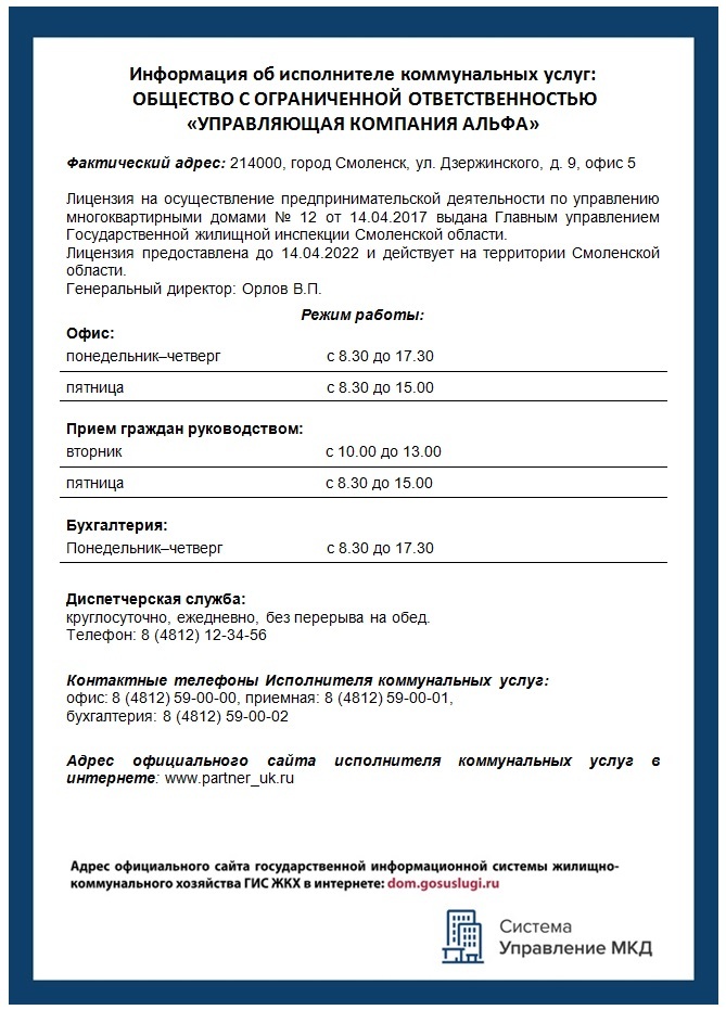 ИНФОРМАЦИЯ ДЛЯ УПРАВЛЯЮЩЕЙ КОМПАНИИ