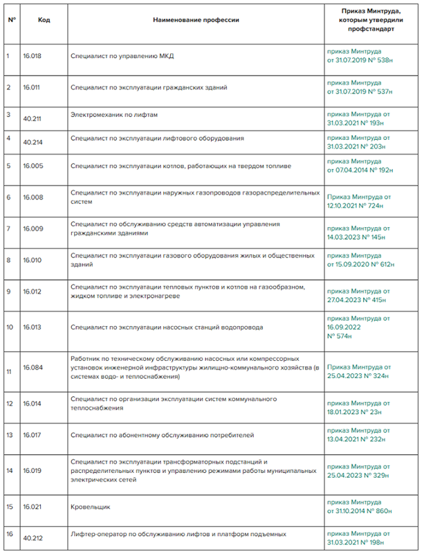 Минтруд утвердил новый профстандарт – «Работник по эксплуатации оборудования, трубопроводов и арматуры тепловых сетей», он действует с 1 марта. В рекомендации разобрали, когда управляющая МКД организация обязана применять профстандарты, а когда — нет. В материале есть перечень всех профстандартов сферы управления МКД.