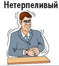 Не в состоянии ждать, постоянно всех подгоняет, любит жаловаться | Полезно уточнять, чего именно он хочет: возможно, вы просто не поняли друг друга. Постарайтесь побыстрее выполнить его требования, но подчеркните, что делаете это исключительно из уважения к нему и сочувствия к его проблемам |